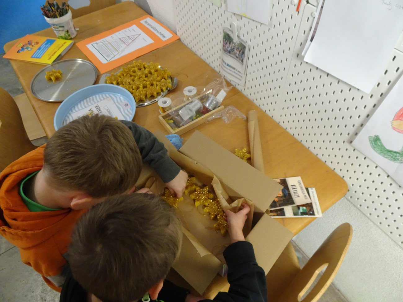 Letztes Jahr haben die Schulkinder ein kleines Projekt gestartet. Hier haben wir Sterne aus Bienenwachs gegoßen, diese mit Blattgold überzogen und dann zu Sternstunden geschickt. Die Sterne wurden auf dem Weichnachtsmarkt in Nürnberg verkauft für einen guten Zweck.